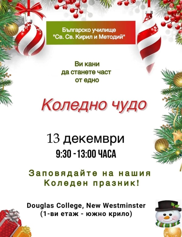 Сърдечно ви каним на нашия коледен училищен празник! Нека заедно споделим духа на Коледа и топлината на българското слово далеч от родината.