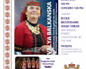 Скъпи приятели, Не пропускайте възможността да се докоснете до магията на Валя Балканска на живо. Певицата и гайдарят Петър Янев ще ни гостуват във Ванкувър на 21 Май 2016 г., събота. Изпълнението на Валя Балканска [...]